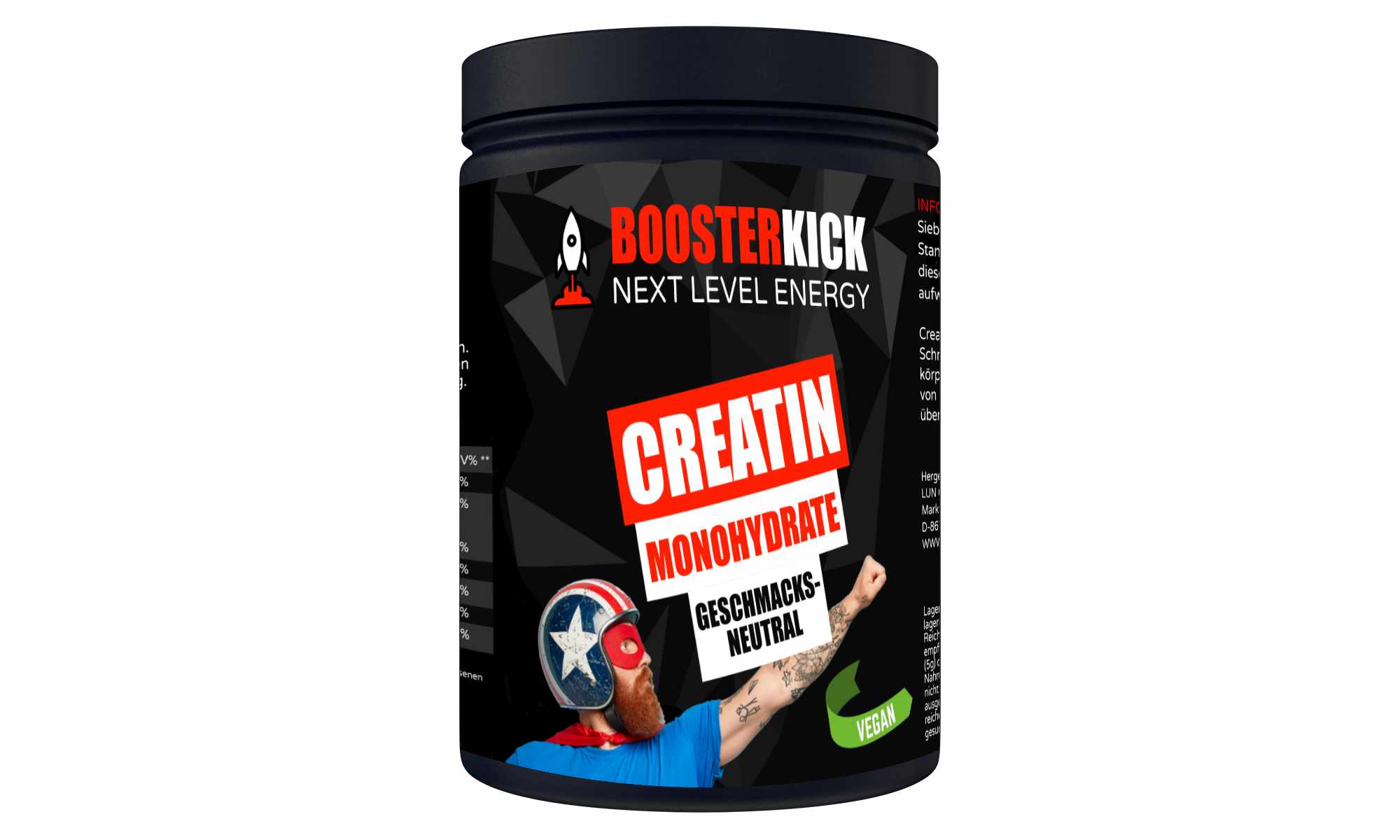 BOOSTERKICK Creatine Monohydrate VEGAN - Neutral 500g Dose